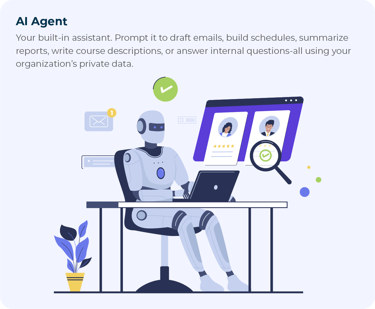 You prompt it to write announcements, build courses, send follow-ups, summarize attendance, and more.
